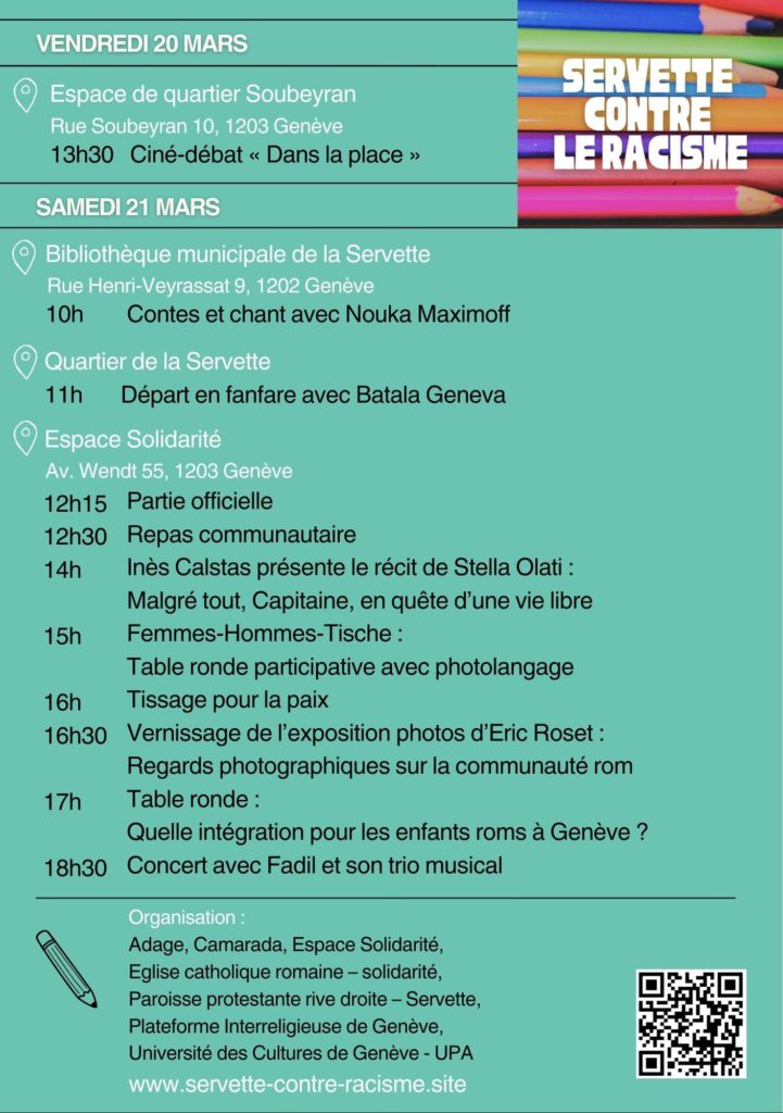 SE RENCONTRER ET AGIR ENSEMBLE ! Dans le cadre de la semaine contre le racisme en Ville de Genève, des associations du quartier de la Servette et de la région mettent à l’honneur la lutte contre les discriminations.